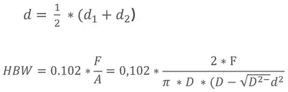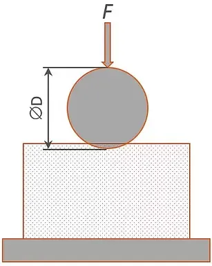 У цьому методі кулька з твердого сплаву вертикально вдавлюється в поверхню зразка з певною силою. Це створює поглиблення на поверхні зразка. Діаметр вдавлення d визначається за допомогою вимірювального мікроскопа, а твердість за Брінеллем вираховується або визначається за відповідними таблицями.