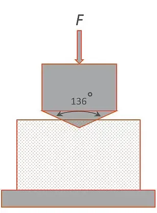 1. Вдавлення алмазної піраміди з випробувальним навантаженням F у випробуваний зразок