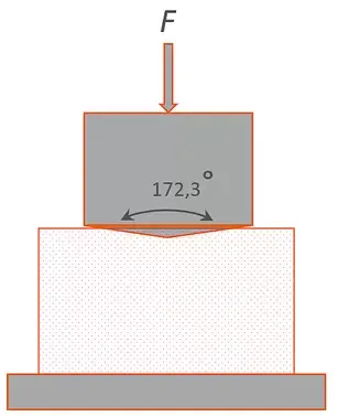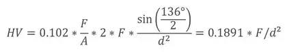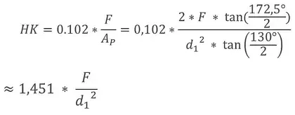 Потім розраховується твердість за Кнупом як добуток сили випробування на площу проекції вм'ятини.