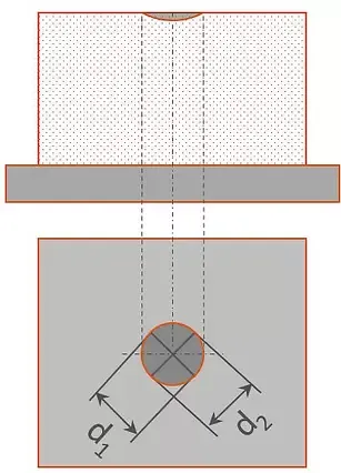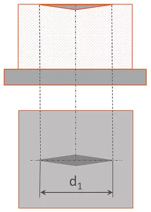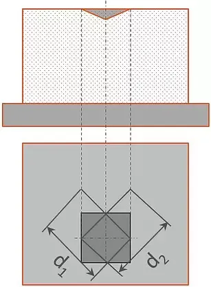 | 2. Вимірювання довгої діагоналі d1 заглиблення |