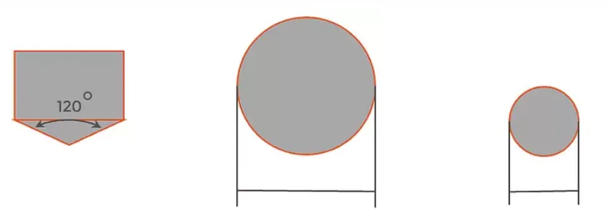 A diamond cone with a point angle of 120° or two hardened steel balls (diameter 1/16 inch = 1.5875 mm or 1/8 inch = 3.175 mm) are used as indenters in the Rockwell test. The steel balls may only be used if this is explicitly required in the product specification or is agreed separately. If required or agreed, carbide balls of 6.356 or 12.70 mm may also be used.