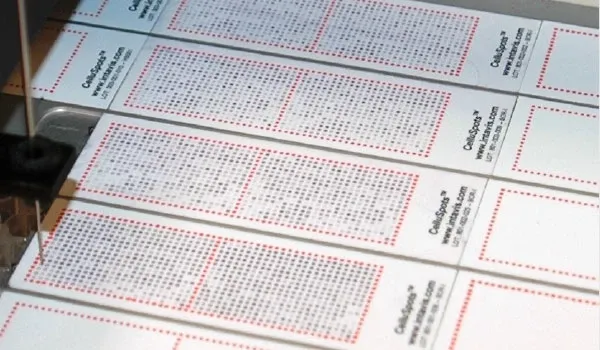 Easily make many copies of a peptide array on glass slides. CelluSpots technology combines the advantages of traditional SPOT synthesis with a unique dissolvable cellulose support for making many identical copies of a peptide array. Based on the use of the unique Slide Spotting robot after SPOT synthesis on the dissolvable cellulose support.