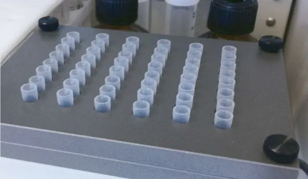 The MultiPep 2 is a powerful tool for small scale synthesis requiring expensive monomers such as PNA. Perform PNA synthesis as low as 1μmol with the small fluid delivery capabilities of the MultiPep 2. Up to 48 smaller columns in parallel (250μL, 500μL sizes) can be used.