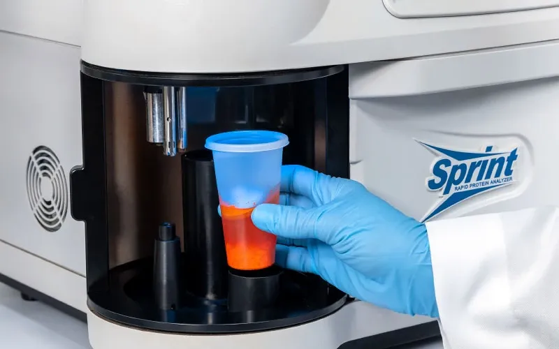 The Sprint® is an advancement for protein analysis based on a rapid green chemistry process allowing for direct protein detection in less than 5 minutes. It replaces the conventional Kjeldahl method for analysis of food products. This patent-pending system, which uses iTAG® protein-tagging technology, identifies and measures only protein, not nitrogen, so you can be certain your results are accurate.