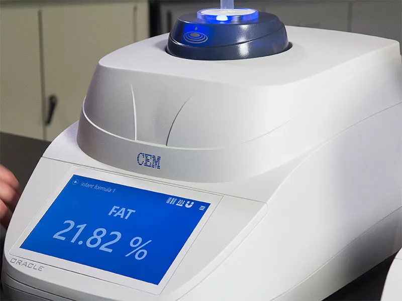 ORACLE™ is the first ever rapid fat analyzer that requires absolutely no method development for fat only analysis. At the touch of a button, ORACLE can analyze fat in any food sample with reference chemistry accuracy, without any prior knowledge of the sample matrix or composition. Simply press the run arrow and ORACLE delivers an exceptionally accurate and precise fat result in 30 seconds. Alternatively, ORACLE can be paired with the SMART 6 for combined rapid fat and moisture/solids analysis in less than 5 minutes.