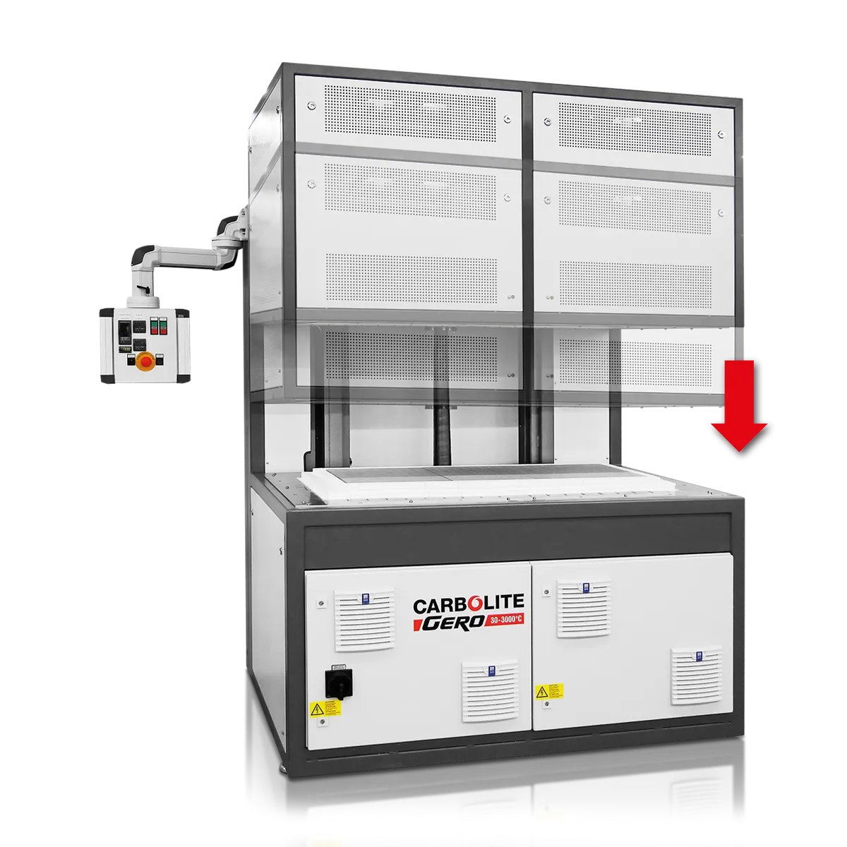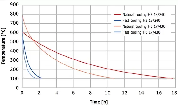 Серія печей HB в стандартній комплектації оснащена автоматично керованим вертикально рухомим ковпаком для термообробки на повітрі. Така конструкція забезпечує доступ до зразків з трьох сторін. Печі HB можуть бути оснащені нагрівальними дротами CrFeAl до 1300 °C або нагрівальними елементами MoSi2 для температур до 1800 °C.