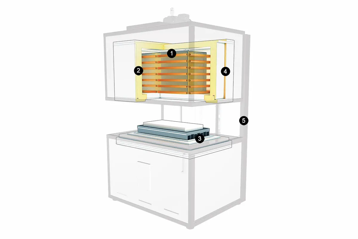 - Нижній нагрівач для поліпшення рівномірності температури (ця опція не може бути поєднана з посиленою основою)