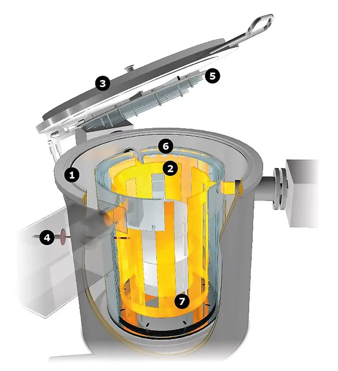 Циліндричний корисний простір лабораторної печі оточений нагрівальними елементами та ізоляційним матеріалом. Нагрівальна камера інтегрована в посудину з водяним охолодженням. Завдяки невеликому об'єму, LHT ідеально підходить для невеликих зразків і вимагає мінімального робочого простору.