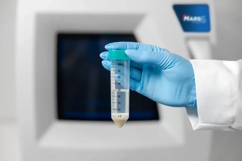 Система MARS 6 PFAS може екстрагувати до 40 зразків одночасно, використовуючи стандартні центрифужні пробірки. Центрифужні пробірки залишаються герметичними для запобігання забрудненню і дозволяють використовувати помірно підвищені температури, забезпечуючи при цьому більш високу ефективність екстракції. Результат: система MARS 6 PFAS забезпечує більш швидкий час екстракції і кращі результати при меншому використанні розчинника і менших витратах на утилізацію розчинника для вашої лабораторії.