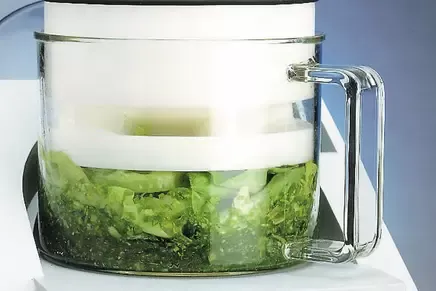 Два гострі, міцні леза обертаються в центрі стакану для подрібнення. Залежно від напрямку обертання, подрібнення відбувається тупою стороною (попереднє подрібнення) або гострою стороною (тонке подрібнення).