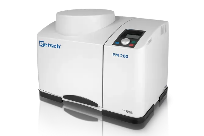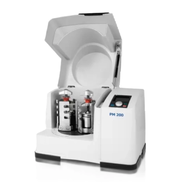 Планетарний кульовий млин PM 200 - це потужна настільна модель із двома розмелювальними станціями для розмелювальних стаканів із номінальним об'ємом від 12 мл до 125 мл.