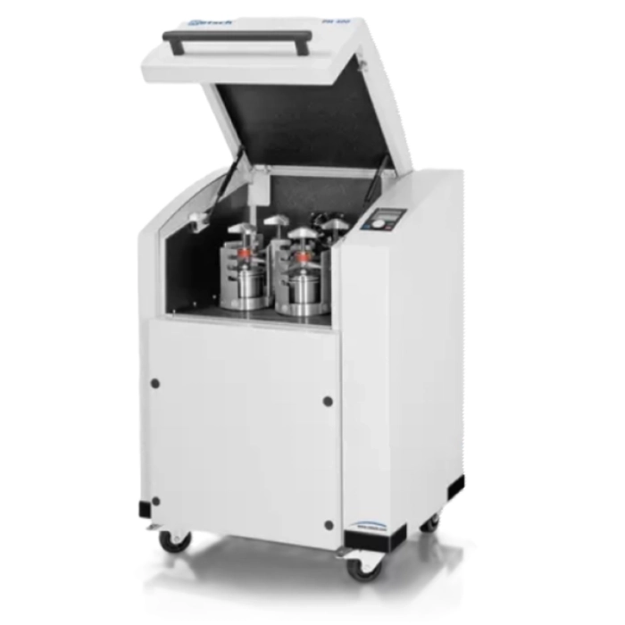 PM 400 - це міцна підлогова модель планетарного млина з 4 розмелювальними станціями, яка приймає розмелювальні стакани