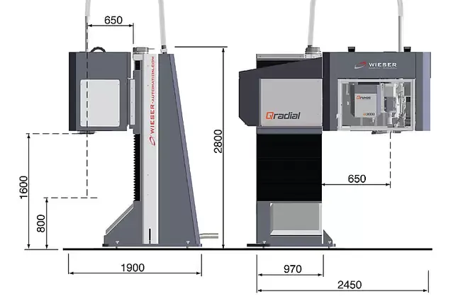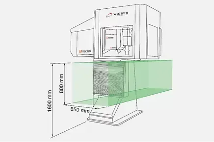 - Простір для вимірювань: макс. висота 1600 мм, вертикальне переміщення 800 мм, простір по горизонталі 650 мм