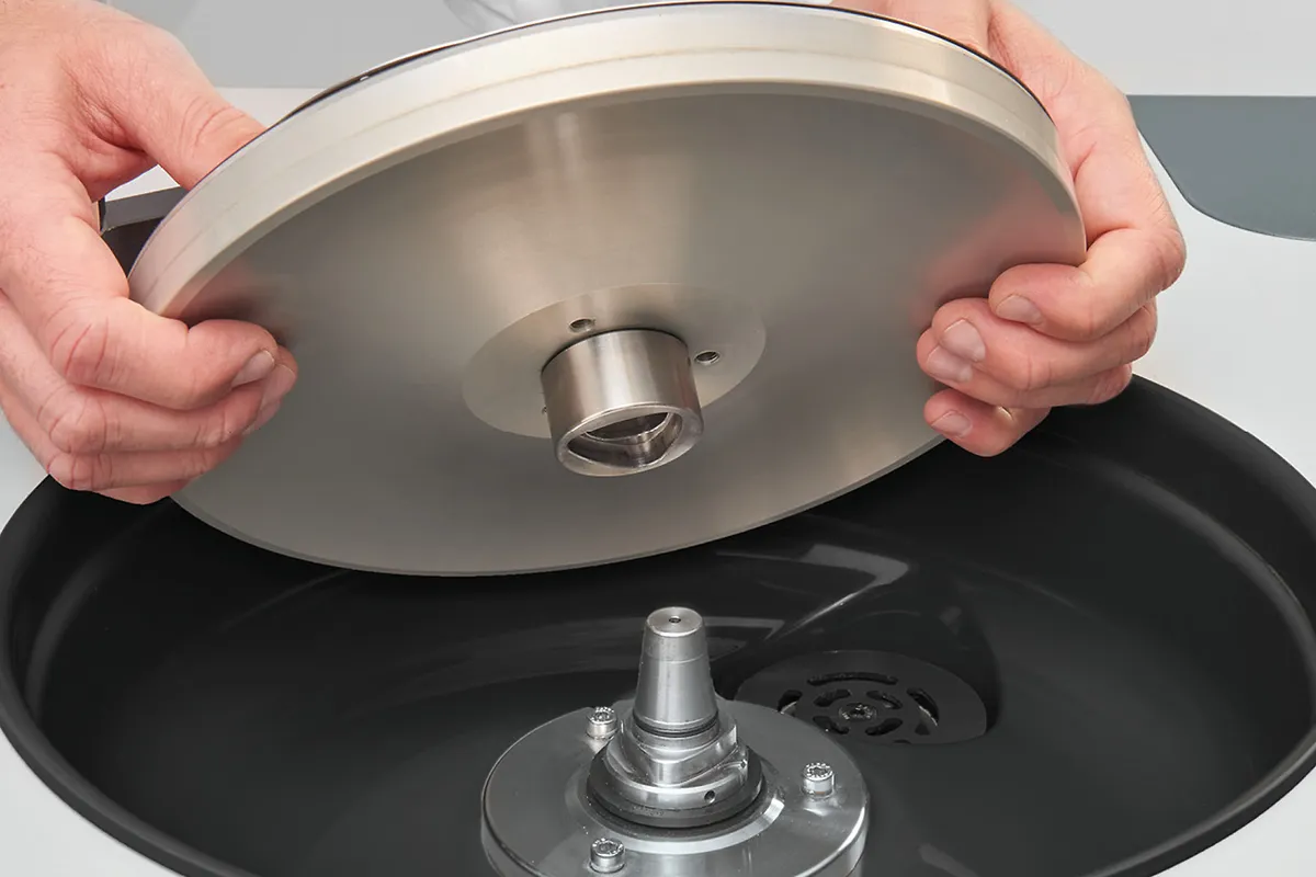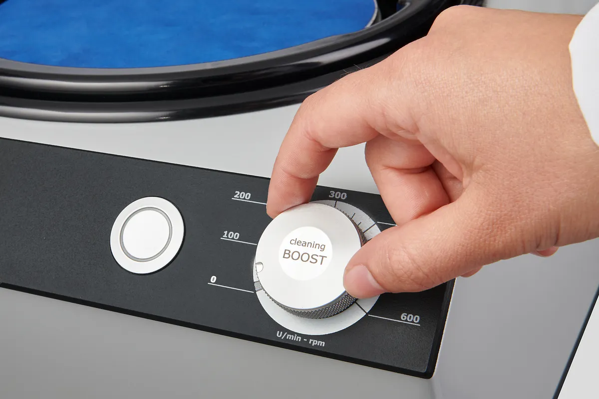 В кінці процедури підготовки можна активувати функцію прискорення, щоб видалити будь-яку рідину, що залишилася на шліфувальному або полірувальному матеріалі, за 5 секунд при 750 об/хв.