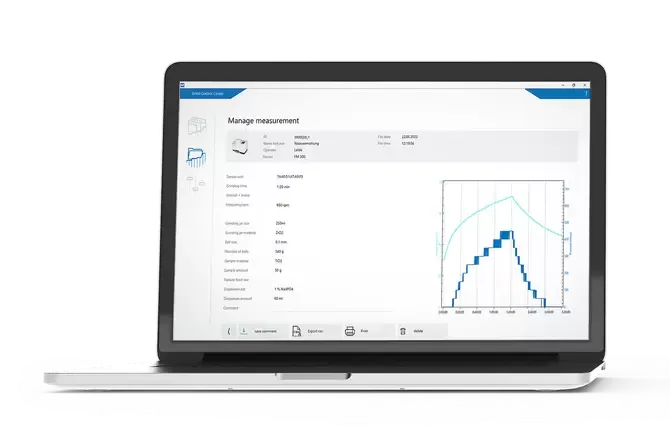 Програмне забезпечення GrindControl - це інтуїтивно зрозуміла програма, яка дозволяє записувати виміряні змінні в режимі реального часу, роблячи їх доступними для подальшої оцінки. Дані вимірювань передаються на ПК, а протокол вимірювань зберігається в послідовному списку вимірювань. Дані можна експортувати для подальшої обробки.