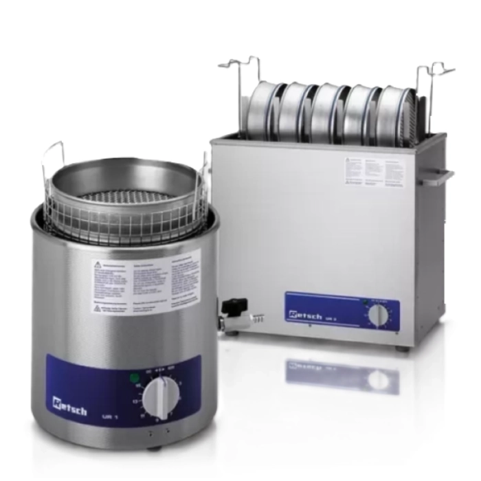 Діапазон приладів RETSCH включає ультразвукові ванни трьох розмірів для швидкого і легкого чищення контрольних сит і розмелювальних гарнітур. UR 1 - для контрольних сит діаметром до 203 мм., UR 2 - для контрольних сит діаметром до 400 мм та UR 3 для одночасного очищення до 5 контрольних сит 200/203 мм діаметром. Бережне і, в той же час, повне очищення контрольних сит в ультразвуковій ванні збільшує термін служби та запобігає пошкодженням, спричиненим ручним чищенням.
