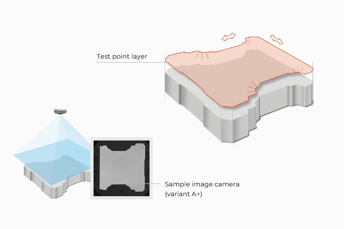 Надзвичайно проста у використанні 5-мегапіксельна кольорова камера записує весь зразок для ідеального огляду і документування в протоколі. У версіях CA+ і A+ вона стандартно фіксує всю поверхню столу як зображення зразка.