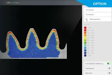 Опціональний програмний модуль "Площинна діаграма розподілу твердості в 2D/3D" є ідеальним помічником для детального контролю розподілу твердості по всій площині фрагмента, особливо для термічно оброблених зразків. Це вкрай необхідна функція під час дослідження матеріалів, а також для контролю зварних з'єднань і під час аналізу пошкоджень.