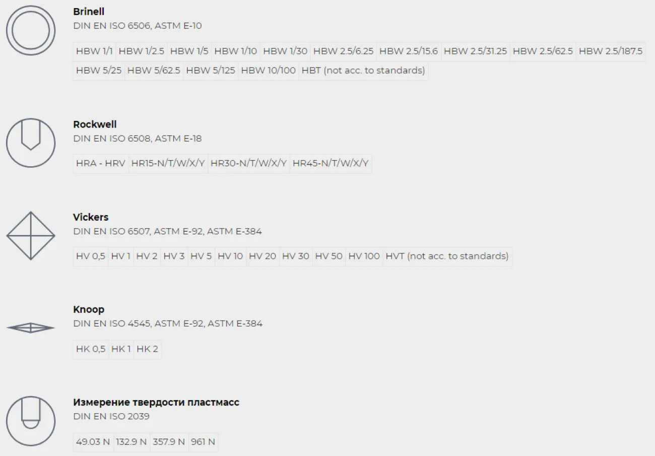 Переведення в інші шкали згідно: DIN EN ISO 18265, DIN EN ISO 50150, ASTM E-140