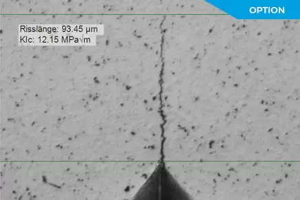 Коефіцієнт інтенсивності напружень K1С вимірюється за 4-ма лініями тріщин відповідно до стандарту. Після цього величина в МПа√м визначається автоматично.