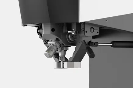 Доступний спосіб забезпечити універсальні застосування: продумана концепція турелі з поворотом навколо осі під кутом 15° забезпечує простір для 8 інструментів в одному унікальному за компактністю пристрої. Притискний елемент із закритою з трьох боків формою гарантують надійне кріплення зразка навколо тестової точки - навіть для невеликих зразків.
