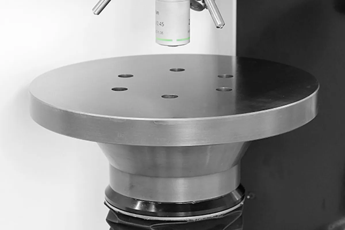 за допомогою стабільної, надточної направляючої шпинделя на роликових підшипниках. Міцна конструкція, що не потребує технічного обслуговування, з витонченим чорним хромованим маховиком. Всі моделі твердомірів за Брінеллем / Кнупом / Роквеллом / Віккерсом серії EVO доступні з кріпленням для столу Ø25 мм (опціонально доступний ¾-дюймовий адаптер). |