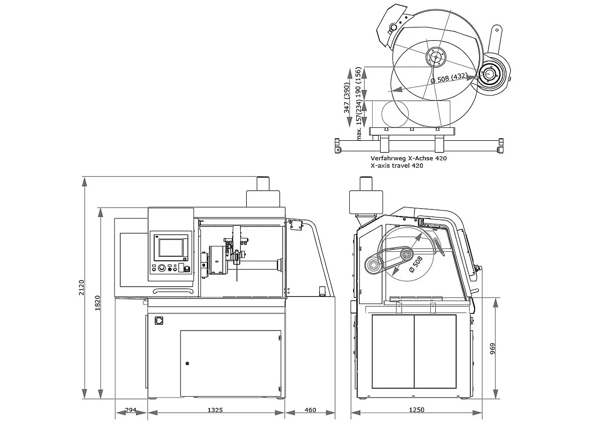 | Переміщення по осі X автоматичне | 420 мм |
