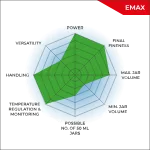 У млині Emax система охолодження охолоджує розмелювальні стакани через кронштейни стаканів. Це дуже ефективно, оскільки тепло легше відводиться у воду, ніж у повітря. Користувач може вибирати між 3 режимами охолодження: на додаток до внутрішнього охолодження, млин можна підключити до чиллера або крана для подальшого зниження температури.