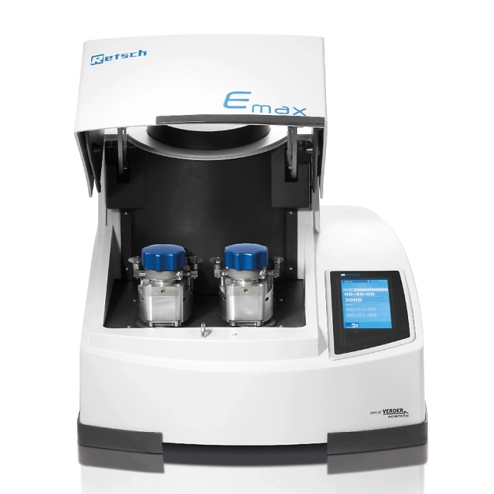 Компанія RETSCH вирішила цю проблему за допомогою інноваційної інтегрованої системи водяного охолодження. Таким чином, Emax зазвичай не вимагає перерв на охолодження, які є типовими для тривалих процесів у звичайних кульових млинах, навіть при низькій швидкості.