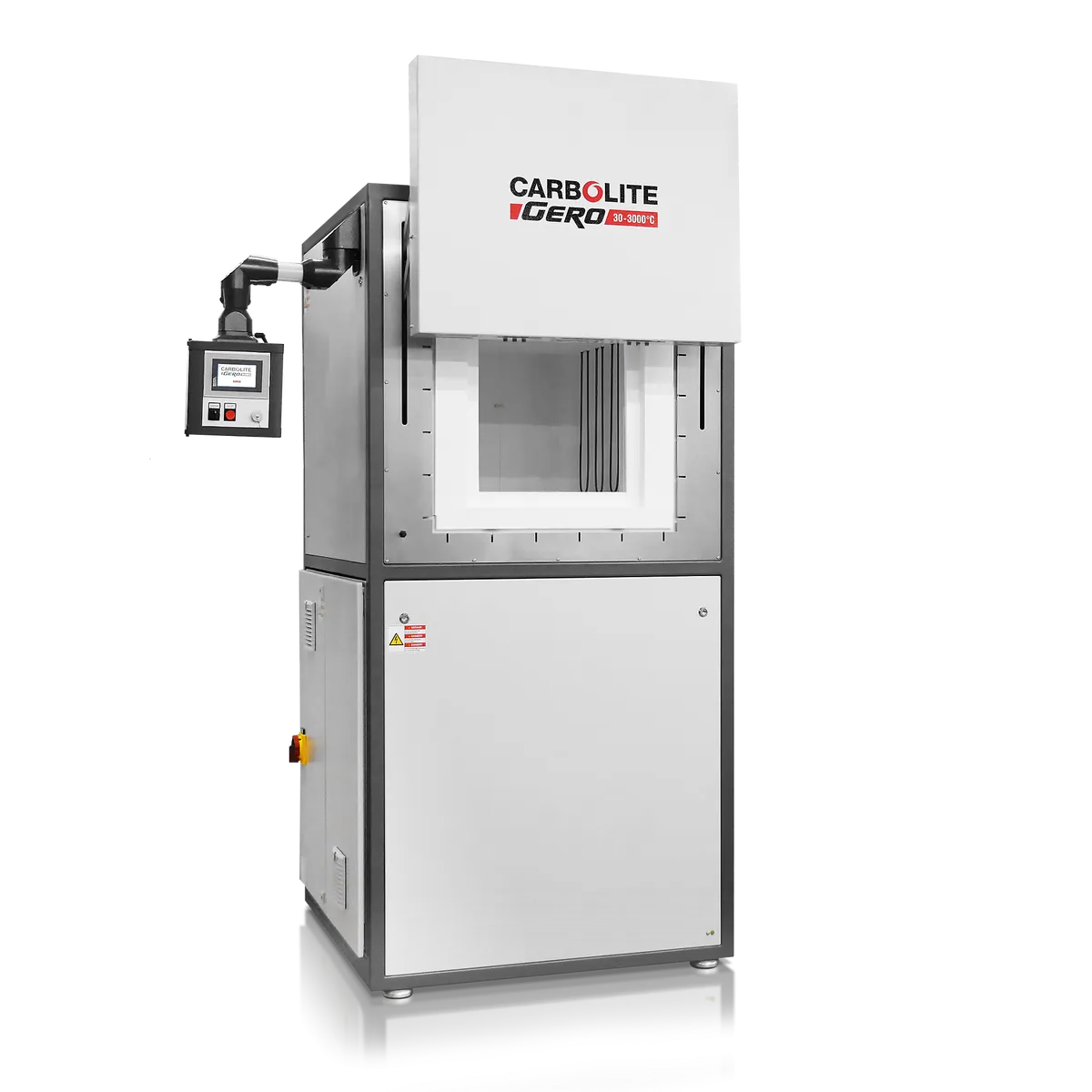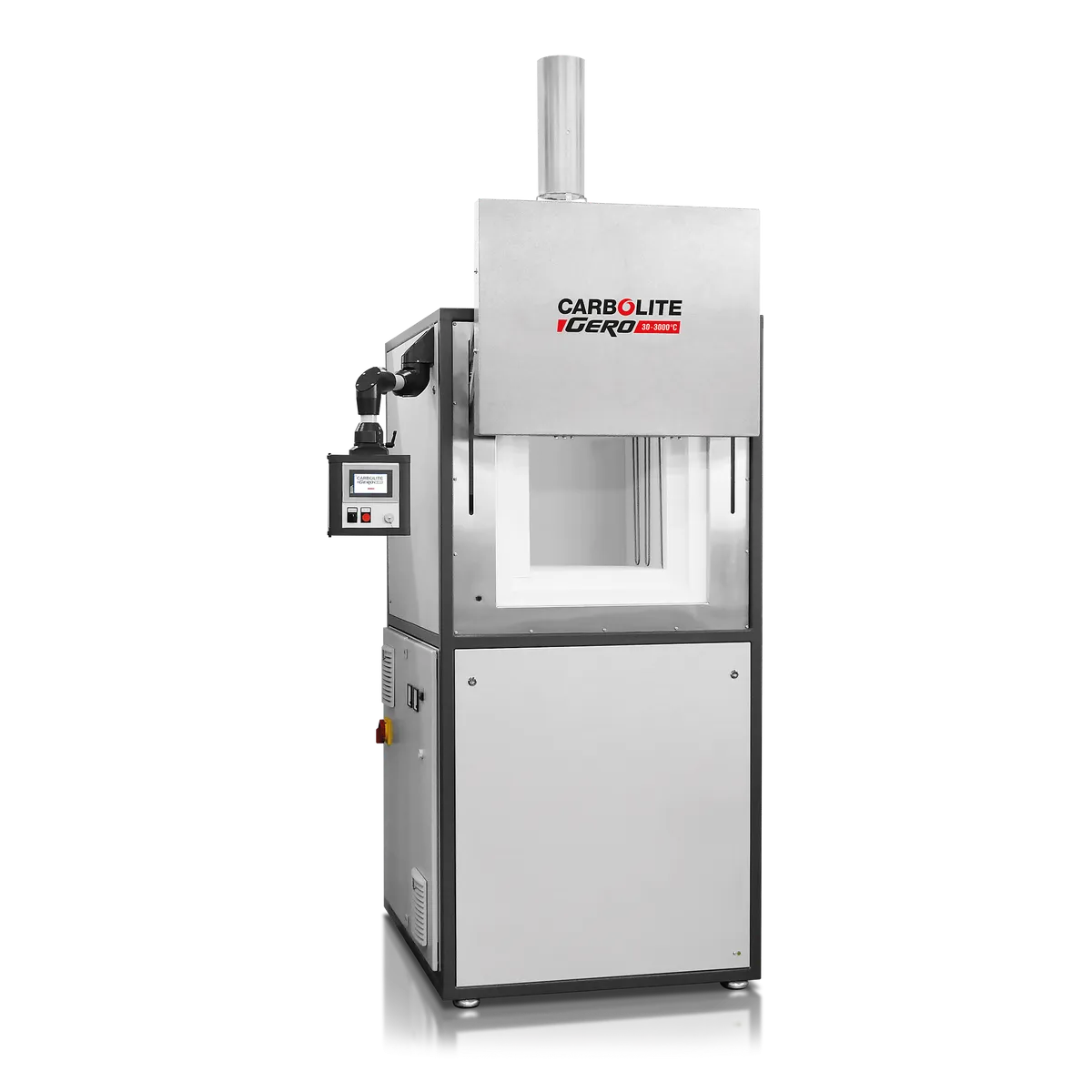 Якщо перед спіканням необхідне видалення в'яжучих речовин, Carbolite Gero пропонує пакет для видалення в'яжучих речовин для HTF. Пакет для видалення в'яжучих складається з вхідного отвору для попередньо підігрітого повітря, декількох газових входів і допалювача. Попередньо нагріте повітря симетрично продувається через кілька газових входів в піч, що покращує однорідність температури при низьких температурах і обволікання зразка повітрям, що надходить. Всі газоподібні побічні продукти, що утворюються в процесі видалення в'яжучих речовин, спалюються в камері допалювання, яка приводиться в дію газом пропаном і стисненим повітрям. Після завершення процесу видалення в'яжучих речовин температура печі підвищується, щоб почати процес спікання.