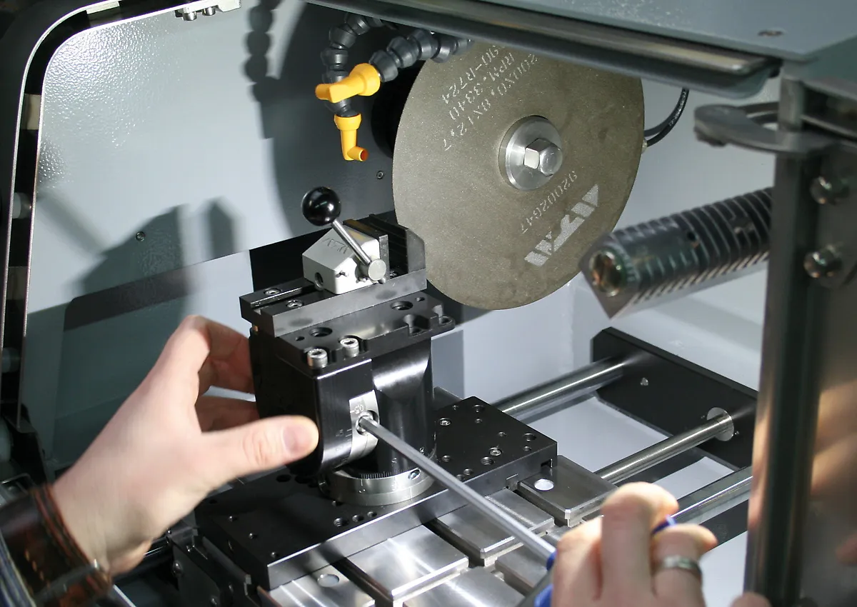 Затискні пристрої QATМ надійно фіксують зразок будь-якого розміру і матеріалу для точних процедур різання. Широкий спектр різних інструментів та затискних систем доступний для всіх відрізних верстатів QATM.