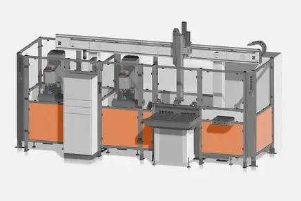 Измерение твердости по методу Бринелля, измерительная станция для диаметра, комбинированное исследование (спектральный анализ), автоматическая подготовка тестовых точек, маркировочный прибор, система транспортировки.