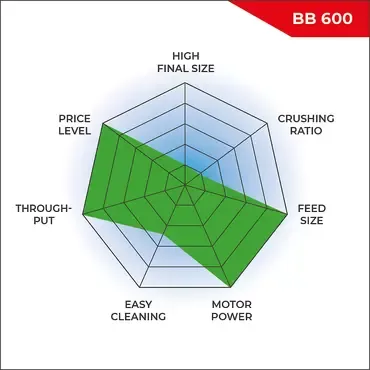 Благодаря малой установочной высоте (1 м), BB 600 идеально подходит для непрерывного измельчения в технологических линиях и станциях пробоподготовки. Благодаря компактному исполнению BB 600 могут легко заменить лабораторные щековые дробилки в местах их установки.